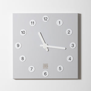 cartoncino serigrafato, alluminio, vetro, legno di tiglio, lancette d'acciaio • silkscreen printed cardboard, aluminium, glass, lime wood, steel clock hands